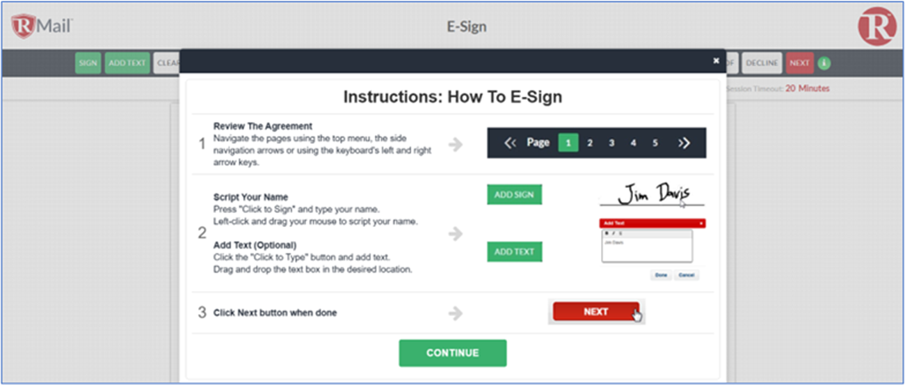 7. The user will be presented with the Instructions: How To E-Sign. Users are to follow the instructions and complete the signature process.