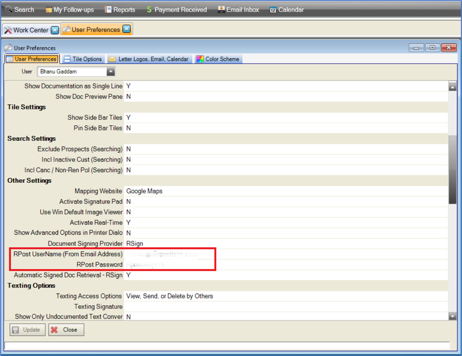 3. Configure your RPost user name and password used to register to any RPost product in Eclipse User Preferences>Other Settings.