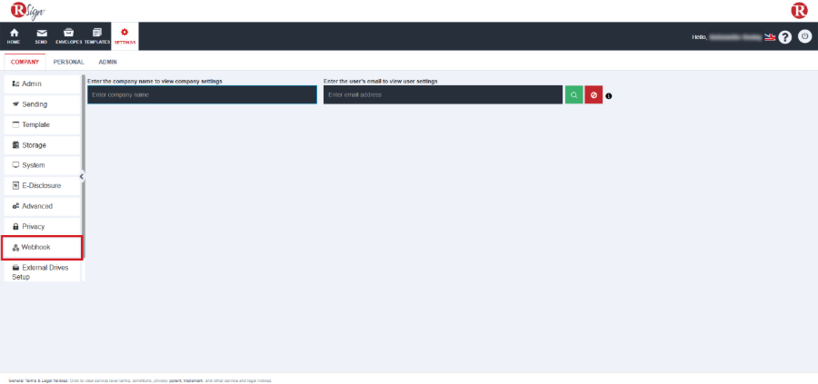 Note: If you do not see the Webhooks module in the RSign® system, please contact your Customer Success representative or RPost® Support team.